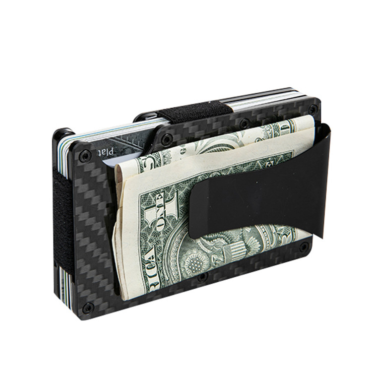 Carteira minimalista RFID de fibra de carbono con clip para diñeiro